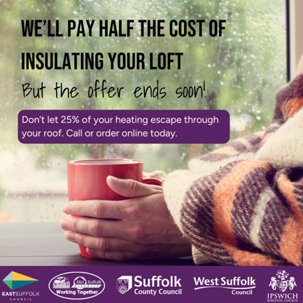 The Suffolk Climate Change Partnership (Suffolk County Council, Babergh & Mid Suffolk District Councils, East Suffolk Council, Ipswich Borough Council and West Suffolk Council) has teamed up with High Loft to help Suffolk residents make their homes warmer and save money on their energy bills.