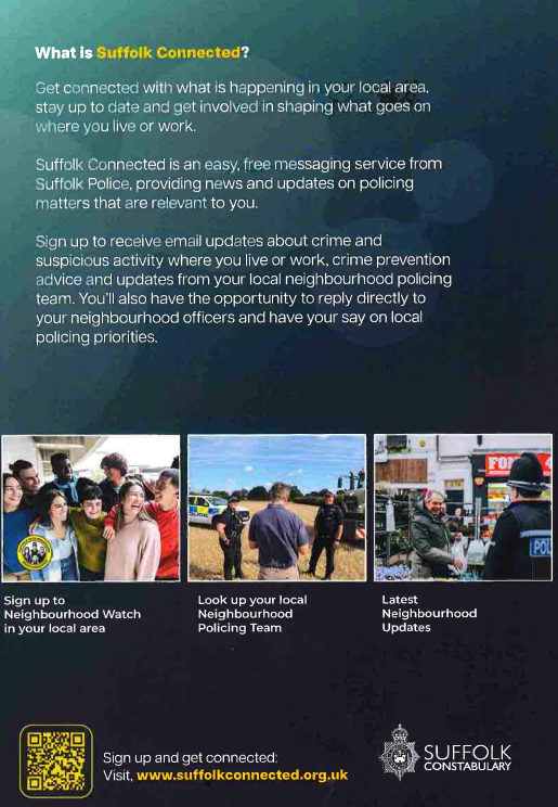 Information about Suffolk Connected, a free messaging service from Suffolk Police.