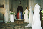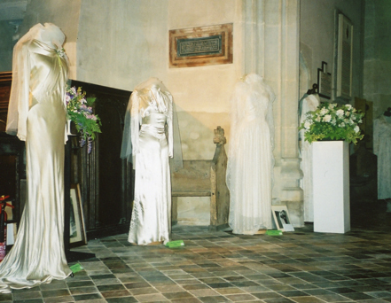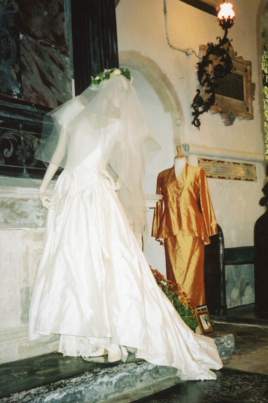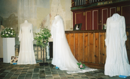 A display of wedding dresses was arranged in All Saints Church, Hawstead in celebration of Her Majesty, Queen Elizabeth II's Golden Jubilee